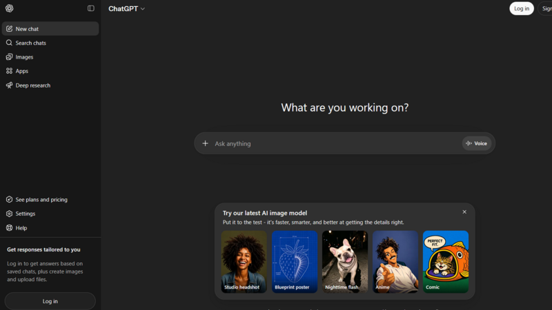 - GPT-4o - handles text, images, voice, and reasoning in one chat.